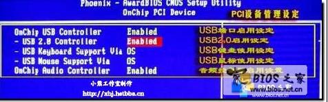 然后 進入 OnChip PCI Device(PCI設(shè)備設(shè)定),可以設(shè)置USB參數(shù)。定義分別是: