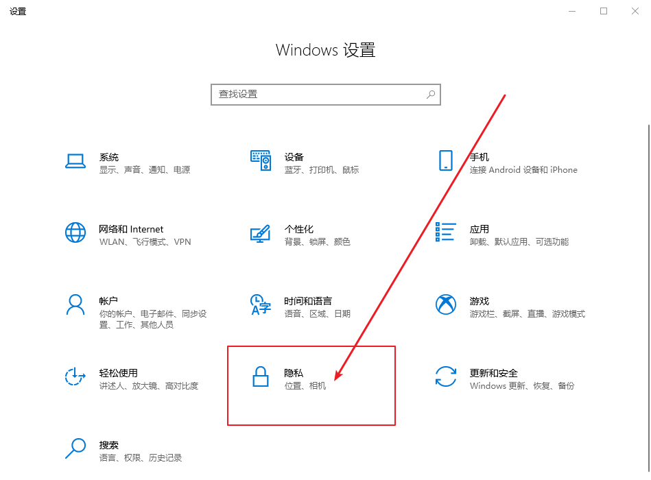 2、 進入設置頁面后,點擊【隱私】