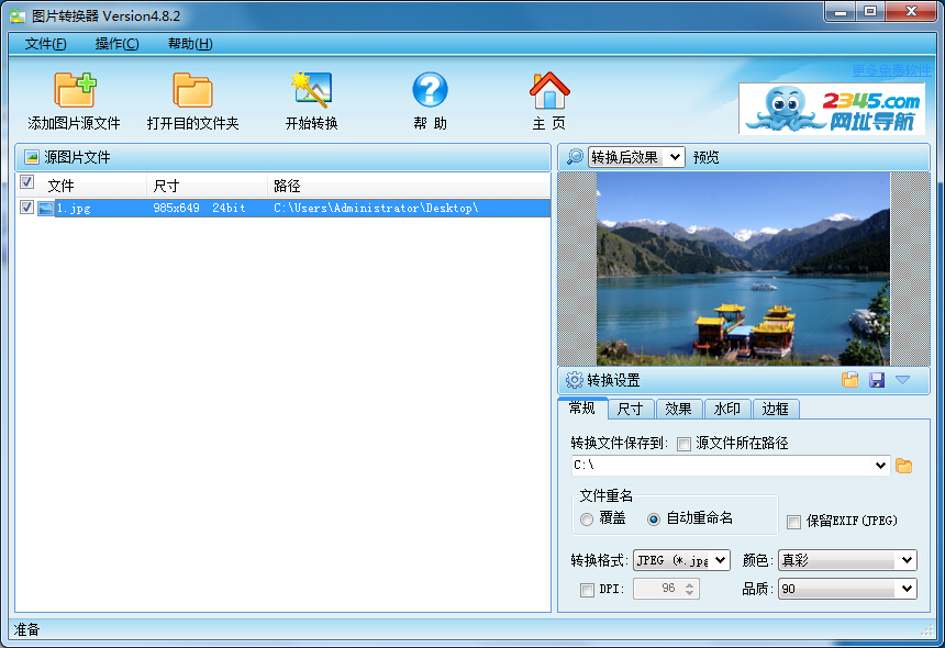 圖片轉換器能夠實現批量圖片格式轉換。支持各種常用圖片格式:BMP, WBMP, JPEG, PNG, TIF, GIF, PSD, ICO,