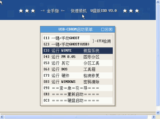 金手指快速裝機(winpe) U盤版V3.0(U盤量產CDROM+HDD選用|