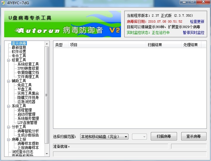 Autorun病毒防御者V2.3.7.350綠色免費版|