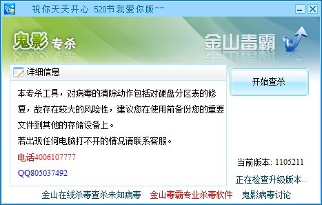 金山鬼影專殺工具(支持查殺鬼影3)V1105201綠色版|